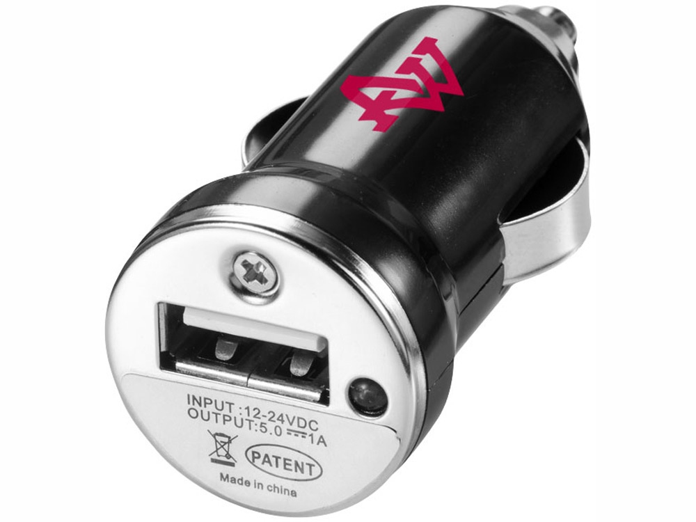 Автомобильный адаптер для одного устройства. Вставляется в гнездо питания для зарядки персональных устройств. Тампопечать (1 цвет (цветные изделия)) на данный товар осуществляется бесплатно. Оплачивается только настройка оборудования в размере 4000 рублей на весь тираж.