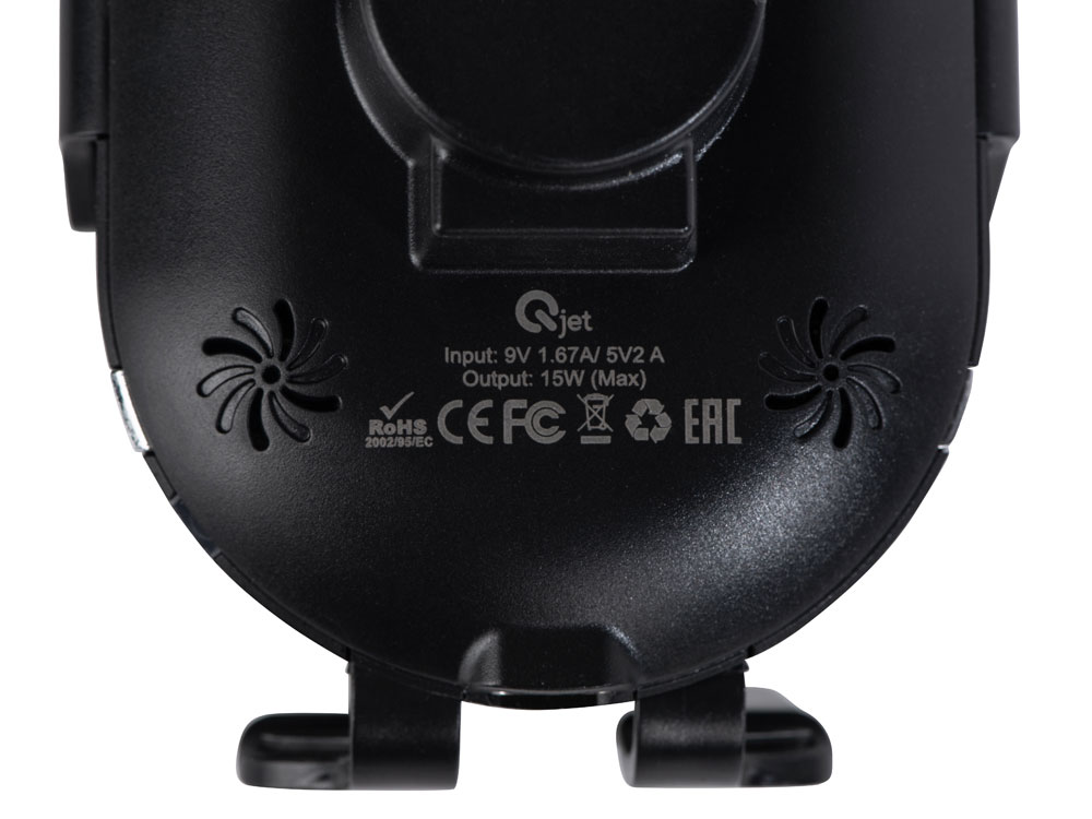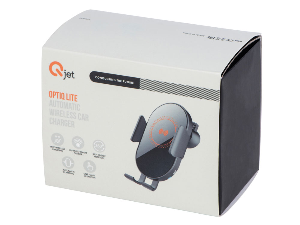 OptIQ Lite от Qjet — беспроводное зарядное устройство, которое автоматически фиксирует и надежно удерживает смартфон, когда вам нужно поместить его на зарядку одной рукой. Для этого коснитесь сенсорной кнопки на корпусе устройства справа или слева и поместите смартфон на нижнюю подставку зарядного устройства. Инфракрасный сенсор считывает присутствие смартфона на устройстве и дает сигнал держателям сдвинуться, после чего они надежно фиксируют телефон, самостоятельно подстраиваясь под его размер.
