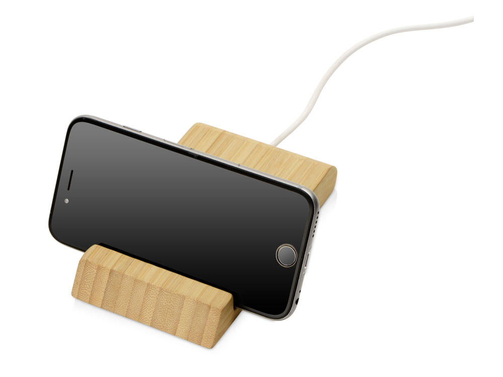 Беспроводное зарядное устройство «Jetty» в корпусе из натурального бамбука поддерживает функцию быстрой зарядки Qi-совместимых моделей смартфонов. Также устройство можно использовать как подставку для смартфона.
