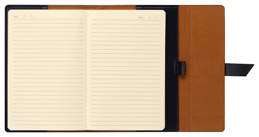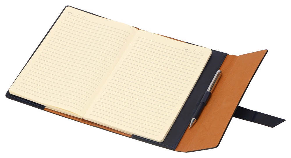 Бизнес-блокнот формата А5 в твердой обложке из искусственной кожи станет отличным подарком для любого клиента. Блокнот состоит из обложки с клапаном и сменного блока с линованными страницами. Внутри обложки есть петля для ручки в тон (ручка в комплект не входит). Тиснение (Фольга) на данный товар осуществляется бесплатно. Оплачивается только настройка оборудования в размере 6200 рублей на весь тираж.