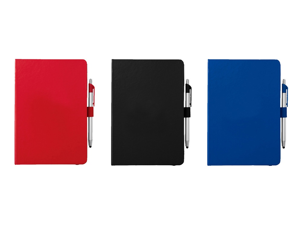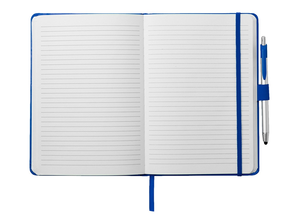Блокнот с эластичной застежкой и ленточкой-закладкой под цвет блокнота. Включает пластиковую шариковую ручку-стилус и 80 листов белой линованной бумаги (70 г/м²). Тиснение (Блинт) на данный товар осуществляется бесплатно. Оплачивается только настройка оборудования в размере 6200 рублей на весь тираж.