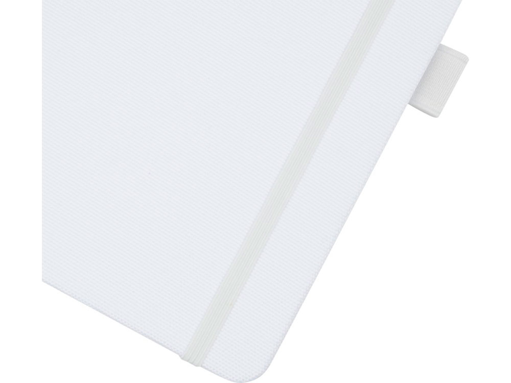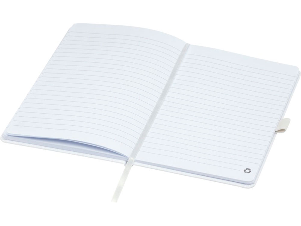Блокнот формата А5 с обложкой из переработанного ПЭТ. Содержит 80 листов в линию плотностью 70 г/м², изготовленных из переработанной бумаги, с петлей для ручки и лентой-закладкой. Может быть дополнен шариковой ручкой Honua 107757 из переработанного ПЭТ. Переработанный PET пластик.
