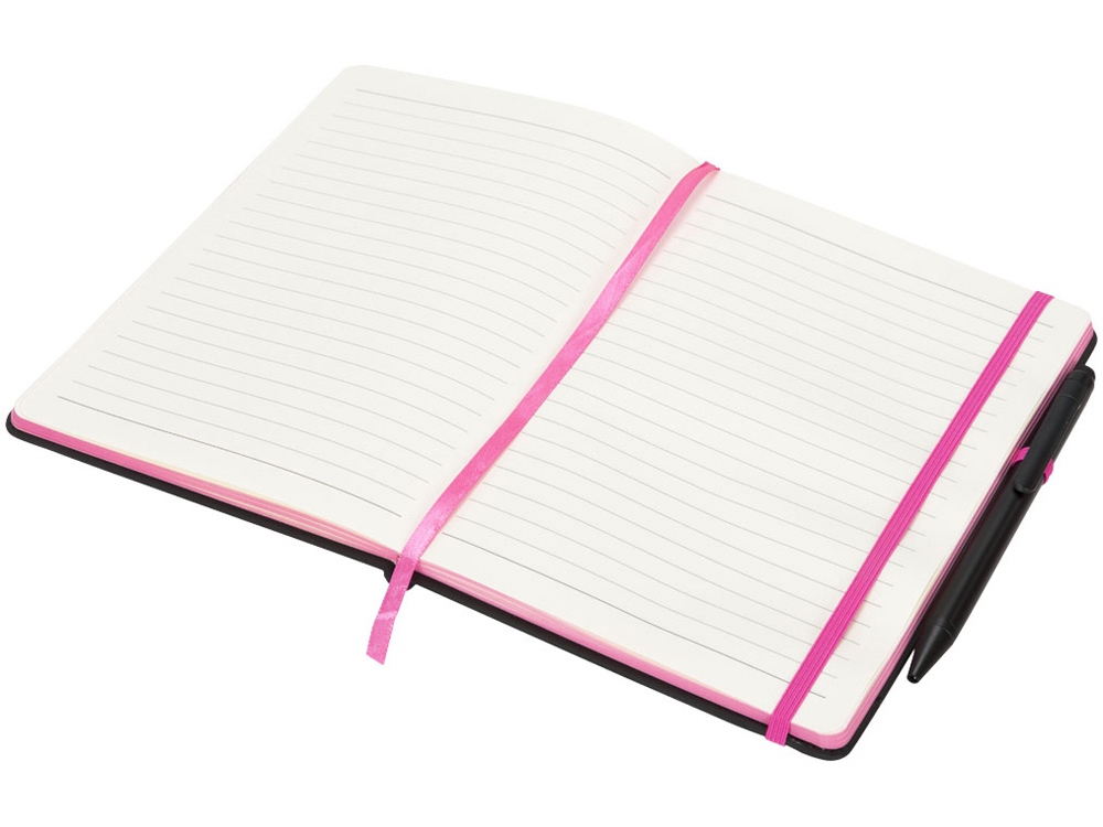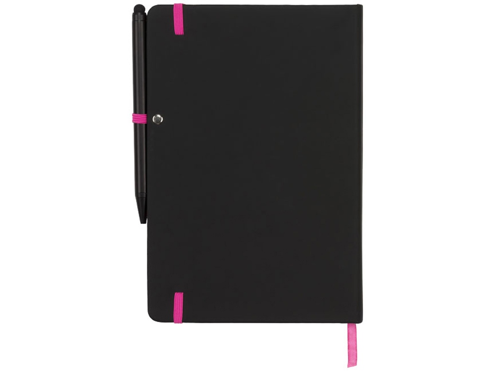 Блокнот Noir Edge среднего размера. Современный и стильный черный блокнот с мягкой на ощупь обложкой. Цветной край и цветные маркеры страниц, застежка-держатель для ручки. Предлагается с черной шариковой ручкой-стилусом. Блокнот содержит 96 листов линованной бумаги (70 г/м²) кремового цвета. ПУ. Тиснение (Блинт) на данный товар осуществляется бесплатно. Оплачивается только настройка оборудования в размере 6200 рублей на весь тираж.