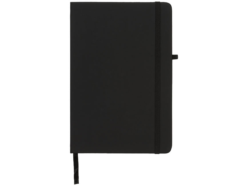 Блокнот Noir среднего размера. Блокнот Noir с мягкой на ощупь черной ПУ обложкой. В каждом блокноте есть цветная застежка, держатель для ручки и лента-закладка. Блокнот содержит 96 листов линованной бумаги (70 г/м²) кремового цвета. ПУ. Тиснение (Блинт) на данный товар осуществляется бесплатно. Оплачивается только настройка оборудования в размере 6200 рублей на весь тираж.