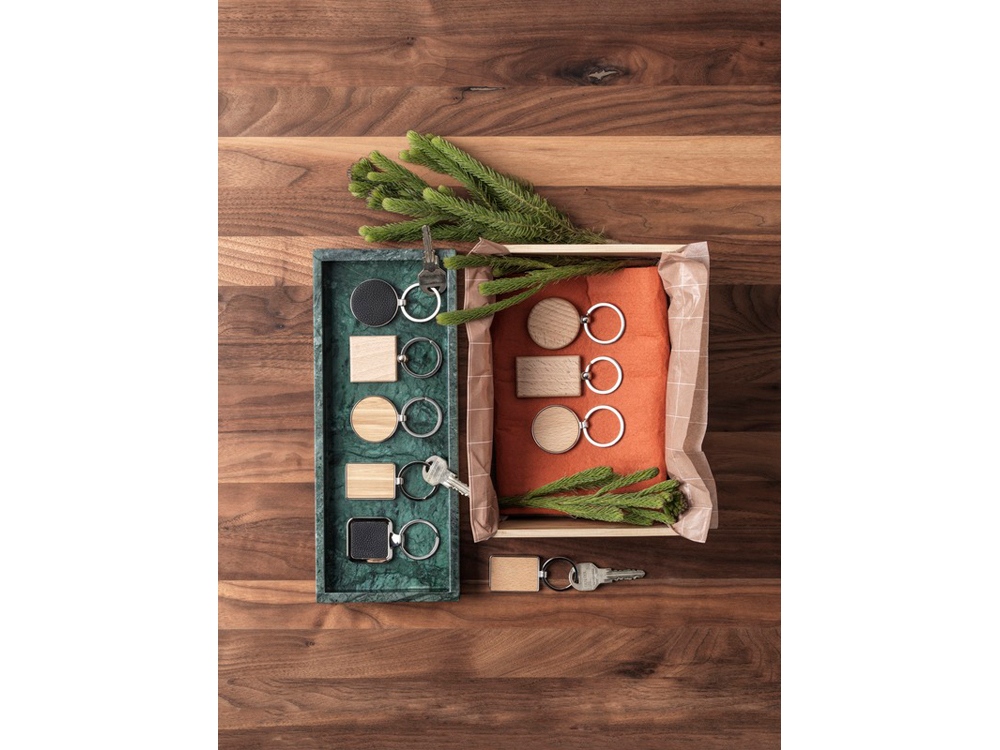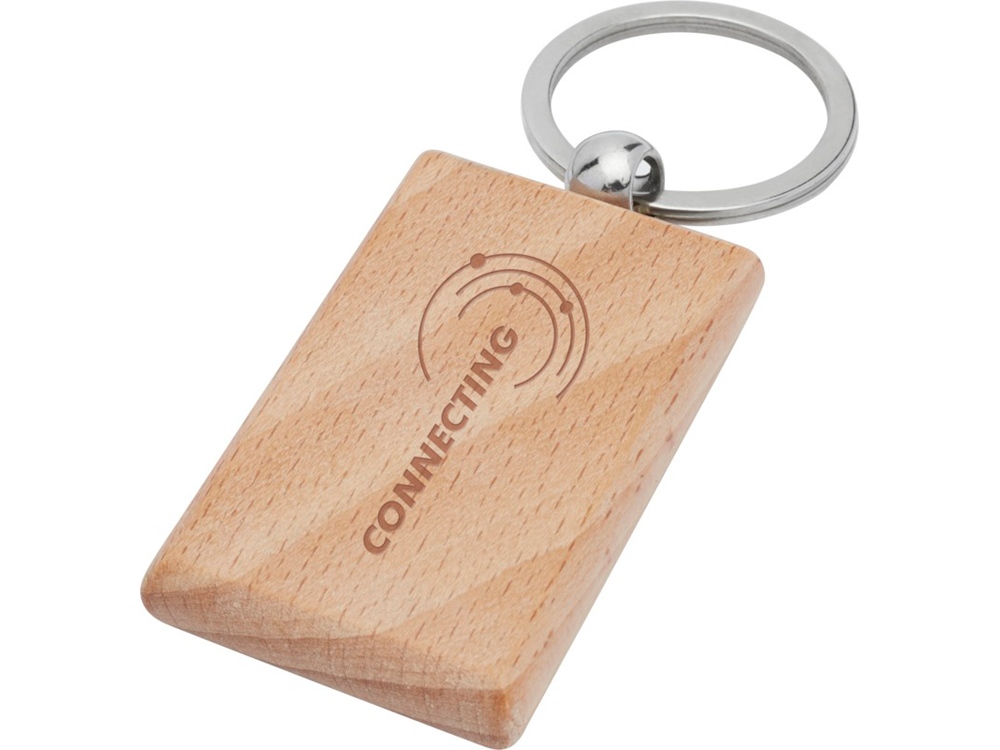Прямоугольный брелок из буковой древесины, поставляемый в коричневой упаковке из шрифтовой бумаги. Размер 5,5 x 3,5 см. Пригоден для лазерной гравировки. Beech wood.