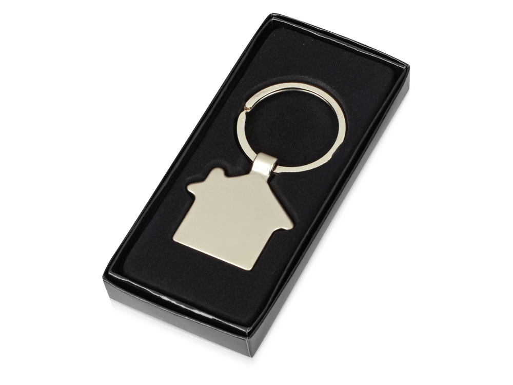 Оригинальный брелок в форме домика. Матовая металлическая поверхность идеально подходит для нанесения логотипа. Гравировка (оптоволоконный лазер) (Без чернения) на данный товар осуществляется бесплатно. Оплачивается только настройка оборудования в размере 1000 рублей на весь тираж.