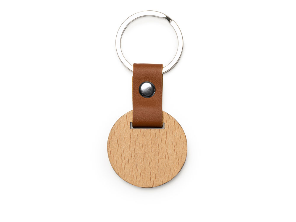 Брелок из натурального дерева с элегантной отделкой из искусственной кожи.