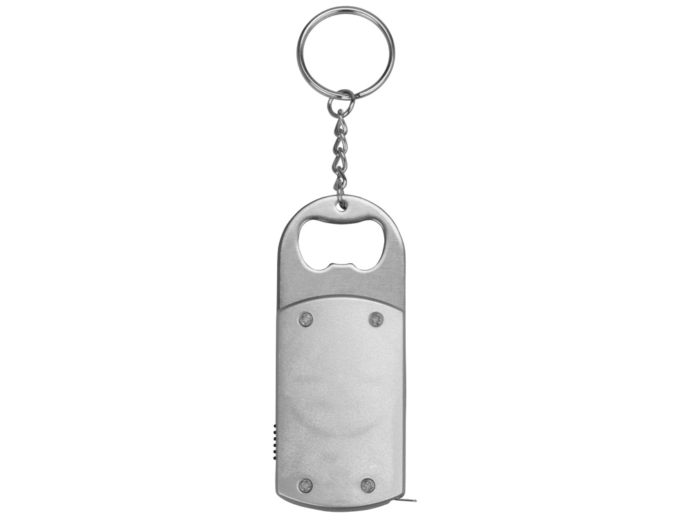 Несмотря на внешнюю простоту, этот аксессуар — настоящий многофункциональный подарок 3-в-1. Брелок состоит из рулетки 1м, прочной металлической открывашки и небольшого, но яркого фонарика. Тампопечать (1 цвет (цветные изделия)) на данный товар осуществляется бесплатно. Оплачивается только настройка оборудования в размере 4000 рублей на весь тираж.