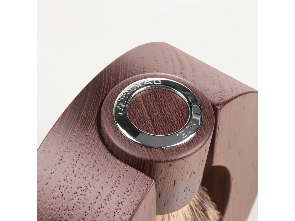 Набор ручной работы выполнен из редкой и ценной породы тропической древесины, получаемой из дерева Венге. Рукоятка помазка имеет хромированные детали.