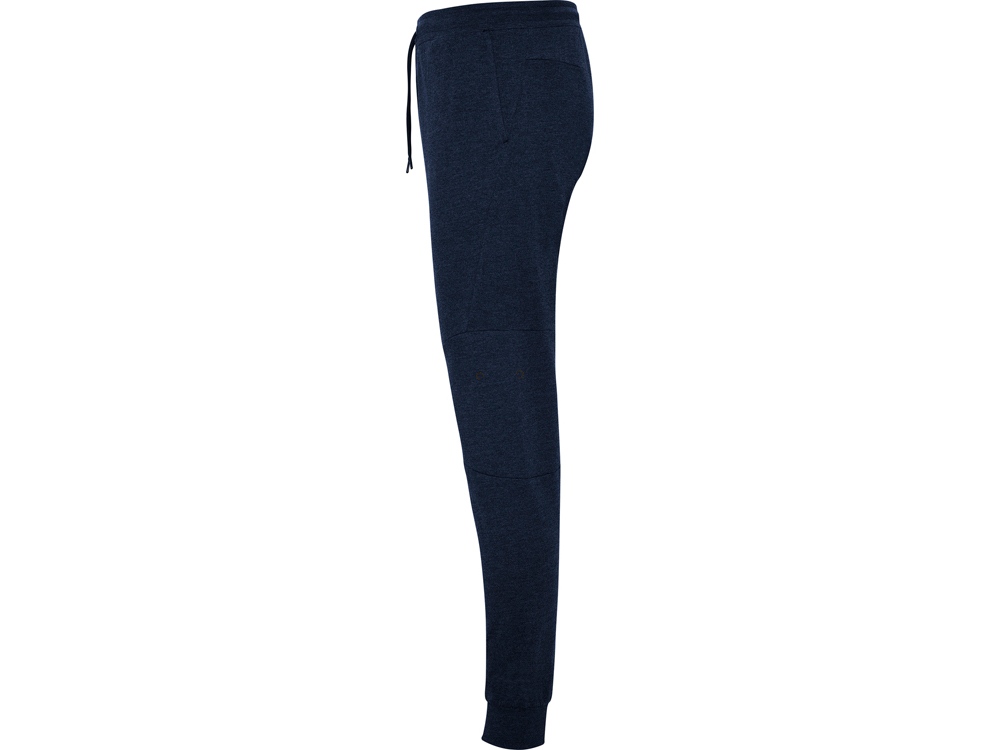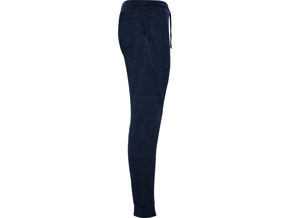 Джогер с эластичным поясом со шнурками для регулировки. Боковые карманы. Очень длинный карман с правой стороны на обратной молнии. Манжеты на штанинах.