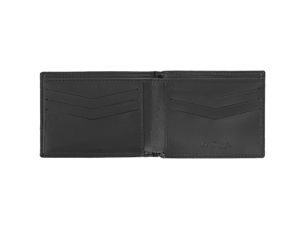 Бумажник изготовлен из черной телячьей кожи и оснащен шестью слотами для кредитных карт и отделением для банкнот. Завершает внешний вид аксессуара логотип в виде литеры D и два накладных кармана.