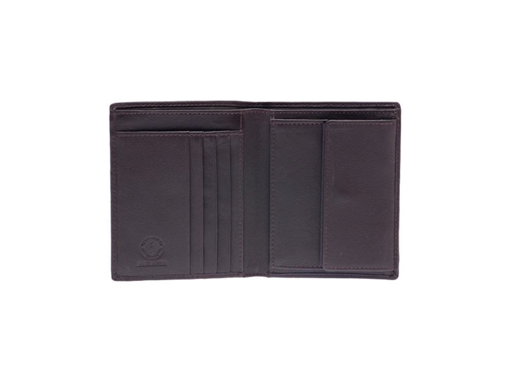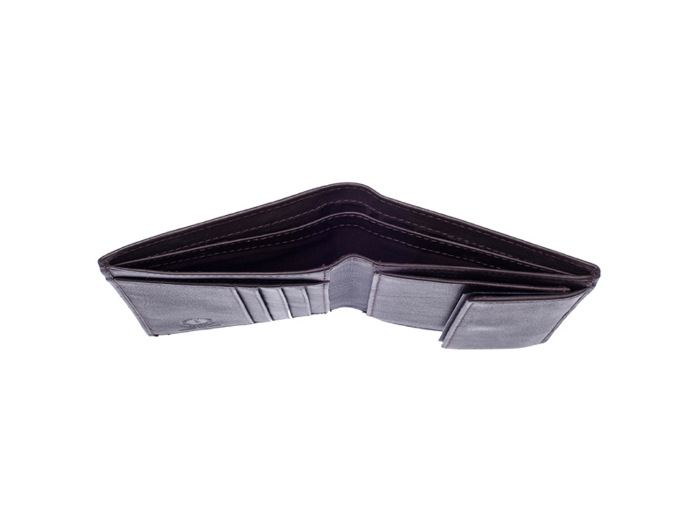 Бумажник мужской серии «Claim», включает в себя четыре отделения для кредитных карт, два боковых скрытых отделения, одно вертикальное отделения, одно отделение для монет, закрывается на кнопку, два отделения для купюр, позволяющие хранить купюры в развернутом виде.