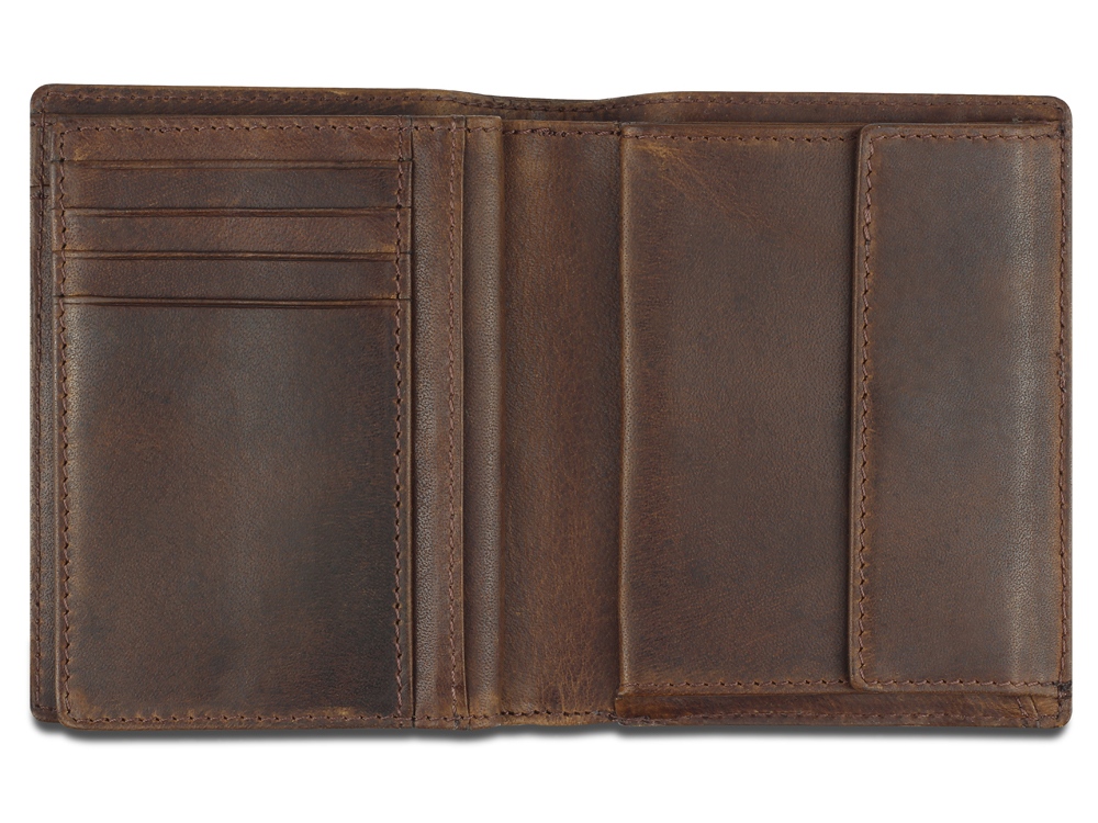 Бумажник изготовлен вручную из натуральной кожи буйвола, обеспечивает безопасное хранение купюр, кредитных карт и монет.