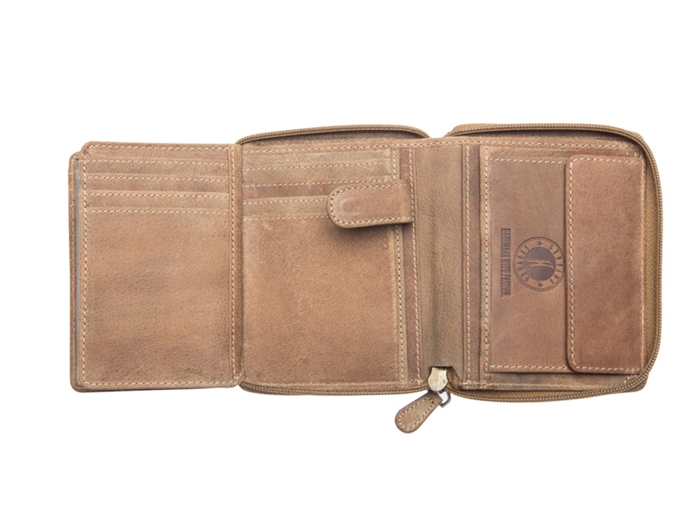 Бумажник мужской «Dylan» закрывается на молнию, включает в себя десять отделений для кредитных карт, восемь из которых вместе с двумя отделениями с прозрачным окошком, закрываются на кнопку, еще одно отделение с прозрачным окошком, четыре скрытых боковых отделения, одно отделение для купюр, позволяющие хранить купюры в развернутом виде, одно отделение для монет, закрывается на кнопку.