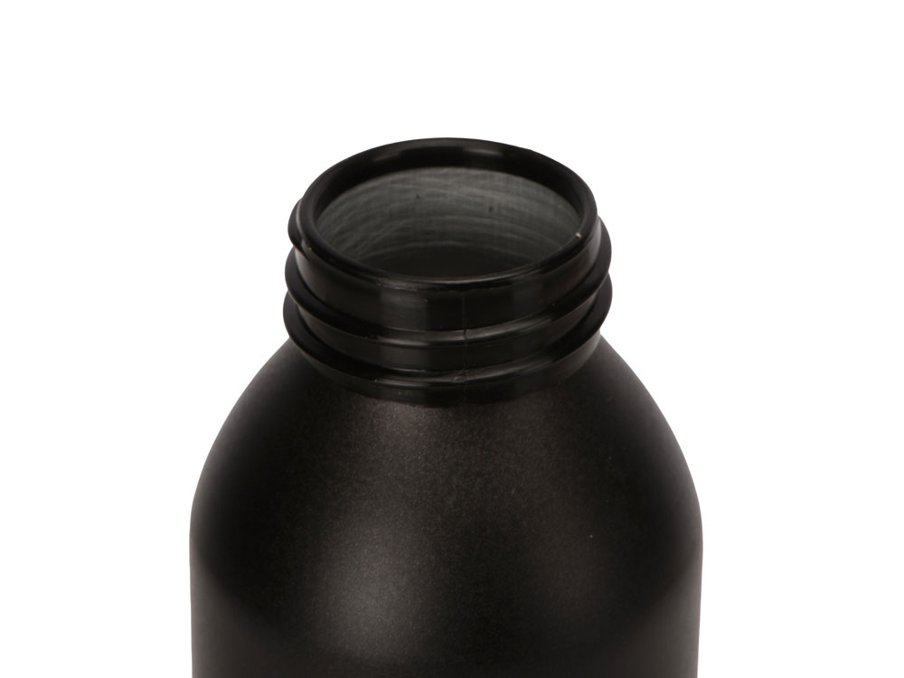 Бутылка для воды Joli выполнена из алюминия, что обеспечивает ей, при довольно солидном объеме (650 мл), сравнительно малый вес. Матовый корпус угольно-черного цвета создает интересный контраст с прозрачной крышкой яркого сочного оттенка, дополненной силиконовой петелькой в тон. Крышка плотно прилегает при закручивании, что обеспечивает Joli герметичность, а текстура покрытия корпуса не дает руке скользить при захвате.