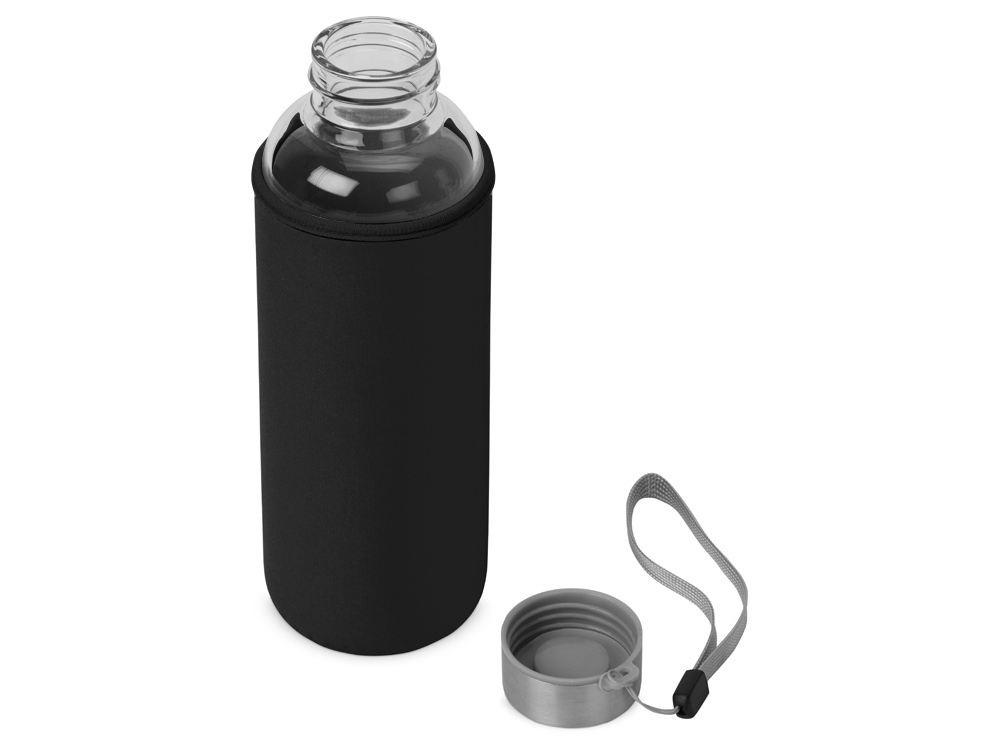 Бутылка «Pure» сделана из боросиликатного стекла, благодаря этому имеет более высокую прочность, чем аналоги из обычного кремниевого стекла. Стекло — экологичный материал, который не впитывает запахи и не влияет на вкус напитков. Крышка бутылки имеет прочный ремешок. Бутылка поставляется вместе с неопреновым чехлом, поэтому ее удобно держать одной рукой, а также хранить и перевозить. Трафаретная печать круговая (1 цвет (цветные изделия)) на данный товар осуществляется бесплатно. Оплачивается только настройка оборудования в размере 5700 рублей на весь тираж.