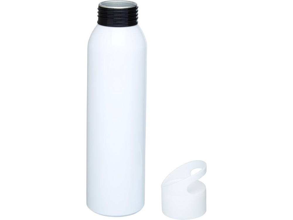 Алюминиевая бутылка с одинарными стенками и съемной крышкой. На крышке есть ручка для удобной переноски. Без содержания БФА. Объем 650 мл. Трафаретная печать круговая (1 цвет (белые изделия)) на данный товар осуществляется бесплатно. Оплачивается только настройка оборудования в размере 5700 рублей на весь тираж.