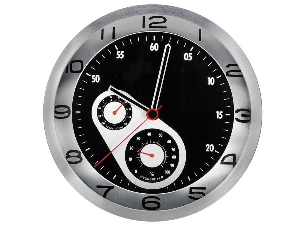 Настенные часы с термометром и гигрометром показывают не только точное время, но и температуру, а также влажность воздуха в помещении. Стильный аксессуар для любого офисного интерьера. Гравировка (оптоволоконный лазер) (Без чернения) на данный товар осуществляется бесплатно. Оплачивается только настройка оборудования в размере 1000 рублей на весь тираж.