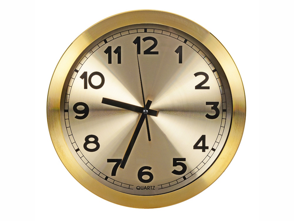 Настенные часы из золотистого металла украсят собой строгую приемную. Классический дизайн, диаметр циферблата – 30 см. Гравировка (оптоволоконный лазер) (Без чернения) на данный товар осуществляется бесплатно. Оплачивается только настройка оборудования в размере 1000 рублей на весь тираж.