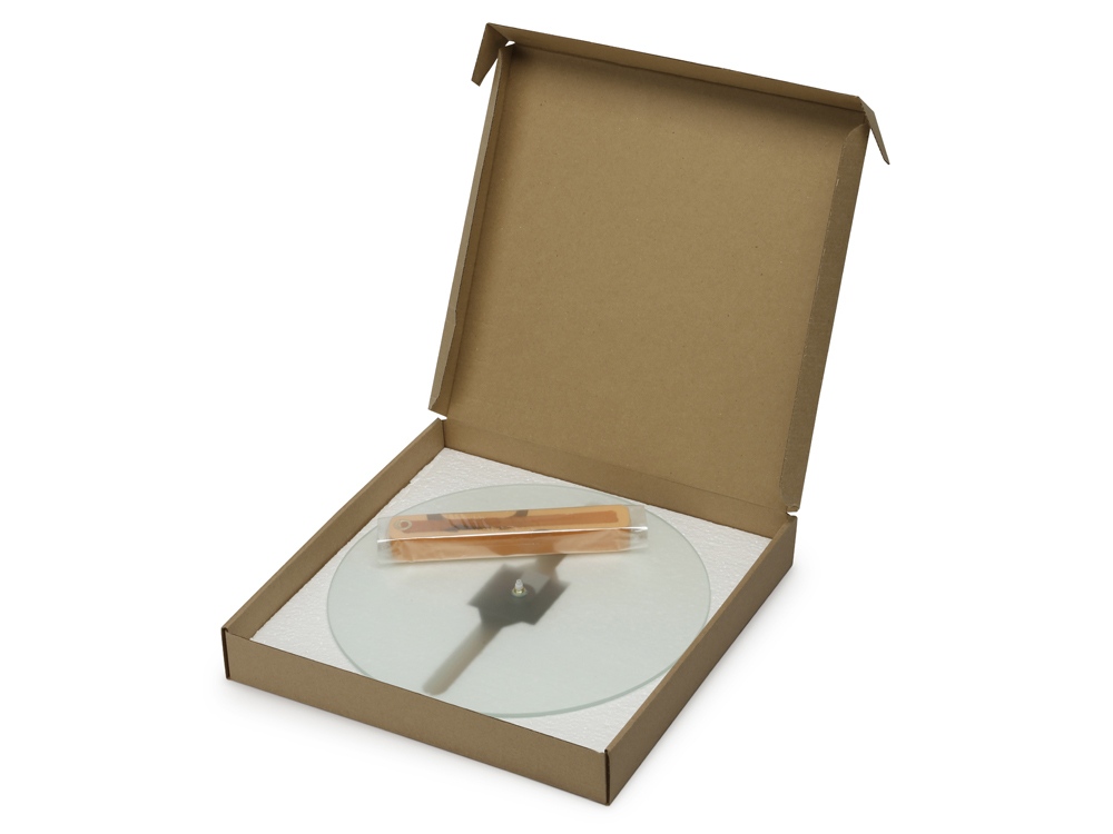 Часы предназначены для нанесения циферблата на стекло по индивидуальному дизайну с помощью технологии цифрового термотрансфера: на оборотную сторону циферблата заводским способом нанесена специальная пленка. Изображение печатают на обычной глянцевой бумаге, а затем закрепляют на циферблате термопрессом — пленка плавится, и бумага с печатью плотно припаивается к стеклу.