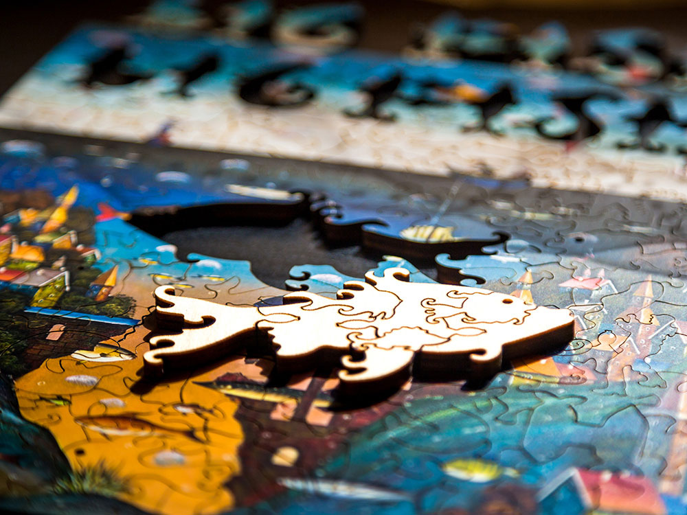 Еще один плюс этого набора — его материал: каждый элемент выполнен из дерева, что делает процесс сборки пазла тактильно приятным. Фигурки прочные, толщина каждой — 5+ мм, поэтому разбирать и собирать изображение можно без страха за соединяющие пазы.
