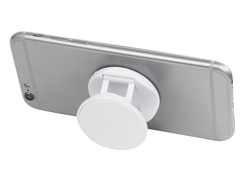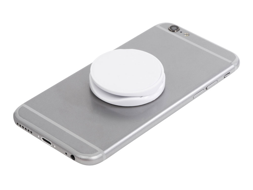 Универсальный держатель крепится на заднюю крышку смартфона. Благодаря конструкции-трансформеру имеет 5 статичных положений, что позволяет устанавливать смартфон на поверхность с комфортным вам углом для просмотра. Держатель имеет регулируемое отверстие для пальца (2 положения) , что позволяет не выронить случайно смартфон из рук. Тампопечать (1 цвет (белые изделия)) на данный товар осуществляется бесплатно. Оплачивается только настройка оборудования в размере 4000 рублей на весь тираж.