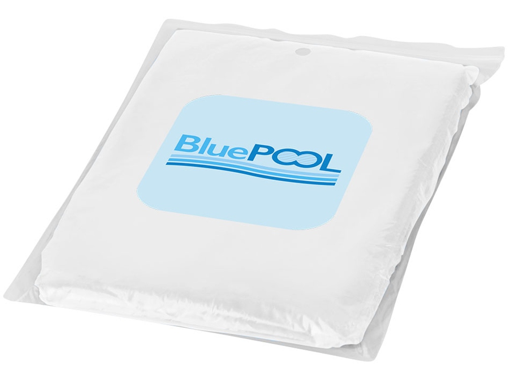 Дождевик Mays из 100 % биоразлагаемых материалов. Дождевик для одноразового использования, состоящий из 100% биоразлагаемого кукурузного пластика. Экологическое решение на случай неожиданного ливня во время любых мероприятий на свежем воздухе. Дождевик размером 125 x100 см поставляется в сумочке, которая также изготовлена из кукурузного пластика. Цифровая печать (наклейка на белой пленке) на данный товар осуществляется бесплатно. Оплачивается только настройка оборудования в размере 1000 рублей на весь тираж.