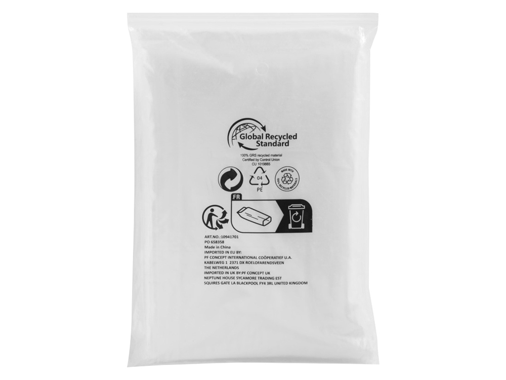 Одноразовый безразмерный дождевик Mayan на 100 % изготовлен из пластика, сертифицированного по стандарту GRS. Прозрачный дождевик с капюшоном пригодится, когда ливень застанет вас врасплох на фестивале на открытом воздухе или любом другом мероприятии под открытым небом. Поставляется с чехлом, который подходит для печати. Размер: 90 x 120 см. Recycled Plastic.