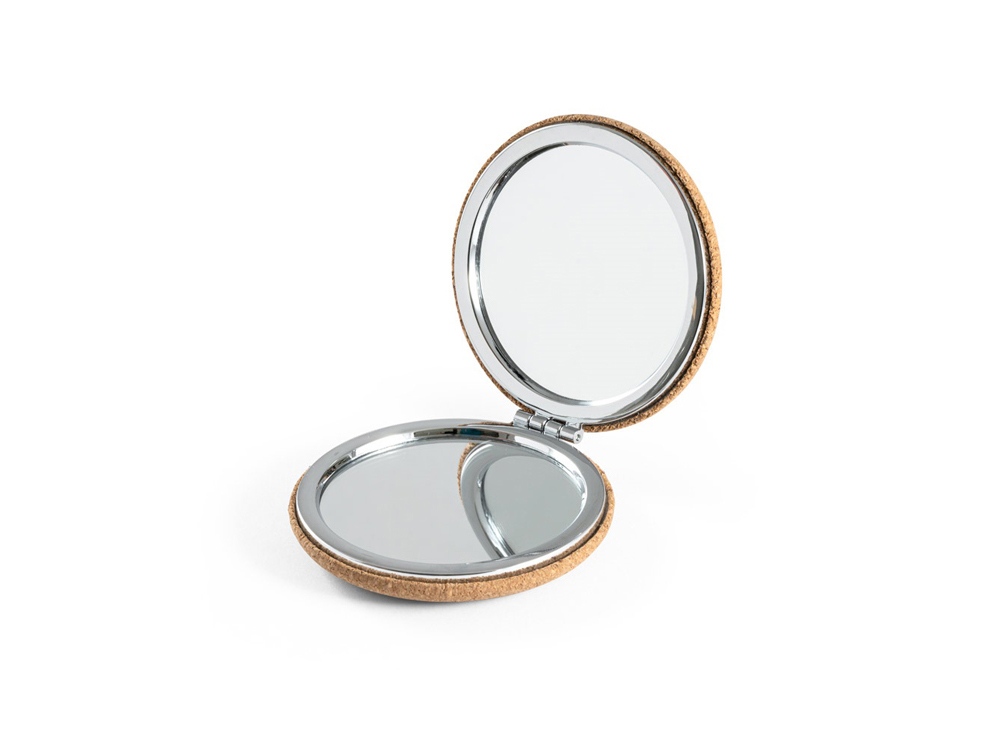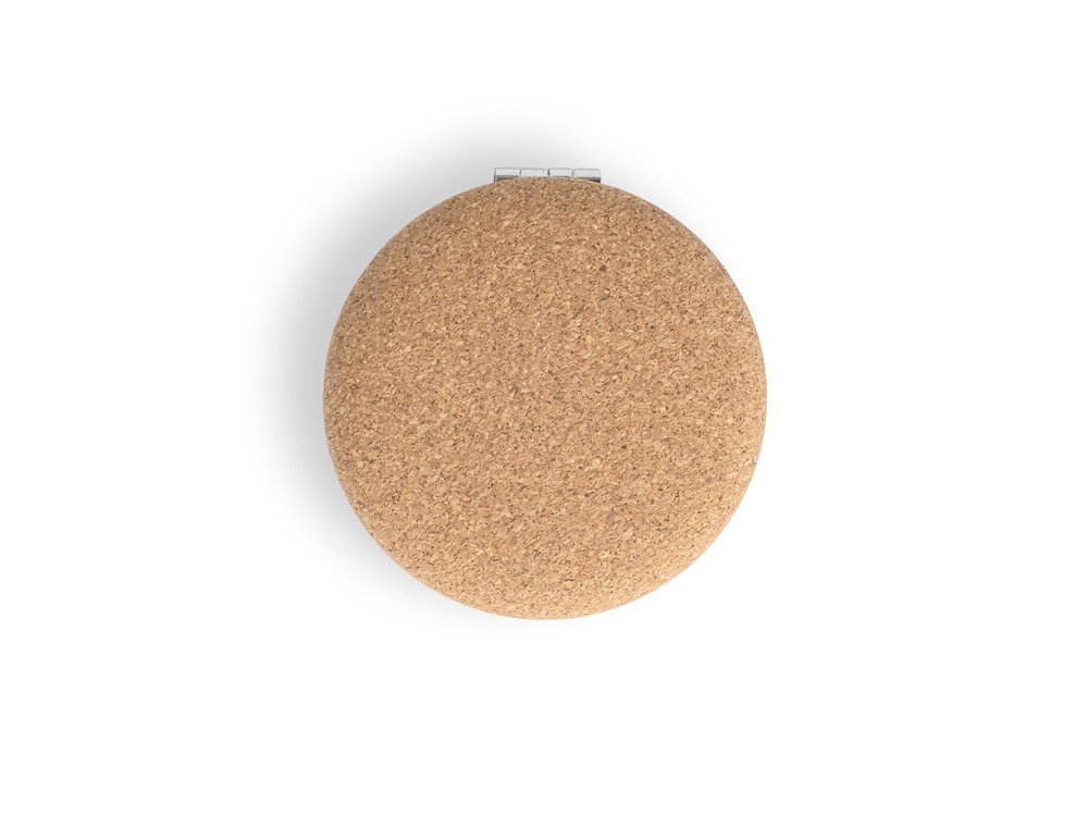 Двойное зеркало из пробки на магните. Поставляется в упаковке из натуральной бумаги. ø73 x 20 мм Гравировка (CO2 лазер) (Без чернения) на данный товар осуществляется бесплатно. Оплачивается только настройка оборудования в размере 1000 рублей на весь тираж.
