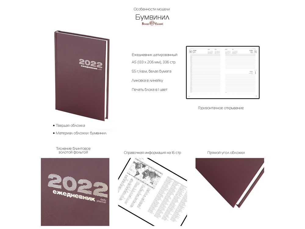 Деловые ежедневники серии «Бумвинил»- это базовые модели в строгом офисном стиле и лаконичном оформлении. Твердый переплет из высококачественного бумвинила подчёркнут тиснением фольгой золотистого цвета, которым сделана надпись. Ежедневник на 2022 год. Тиснение (Блинт) на данный товар осуществляется бесплатно. Оплачивается только настройка оборудования в размере 6200 рублей на весь тираж.