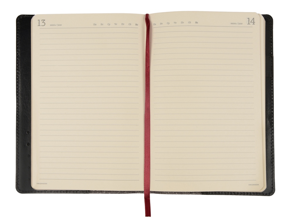 Ежедневник формата А5 выпускается размером 143*216 мм. Полудатированный сменный блок включает 416 страниц бежевого цвета.