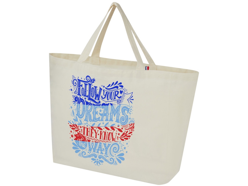 Эко-сумка разработана таким образом, чтобы выдержать использование в повседневной жизни и подходит для переноски тяжелых книг или продуктов. Сумка изготовлена из 100% переработанных материалов, что делает ее более экологичным выбором. Смесь переработанного хлопка/полиэстера плотностью 200 г/м² обеспечивает долговечность и надежность и позволяет переносить вес до 14 кг.