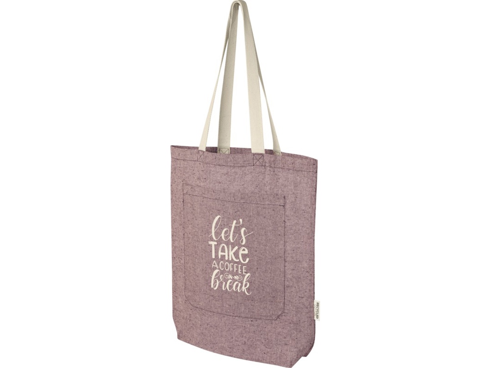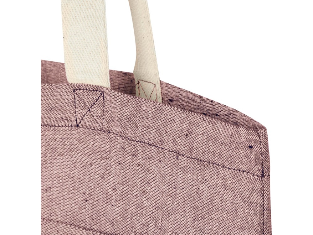 Эко-сумка Pheebs плотностью 150 г/м² изготовлена из экологически чистого переработанного хлопка, бывшего в употреблении. Имеет вязанные ручки из прочного хлопка длиной 27 см, открытое главное отделение и передний прорезной карман.