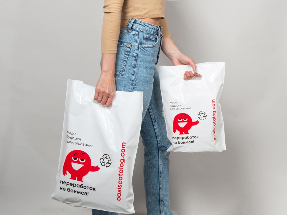 Плотные пластиковые пакеты с логотипом Oasis, которые идеально подходят для транспортировки. Именно эти пакеты мы выдаем нашим клиентам, которые уже успели высоко оценить качество этой упаковки.