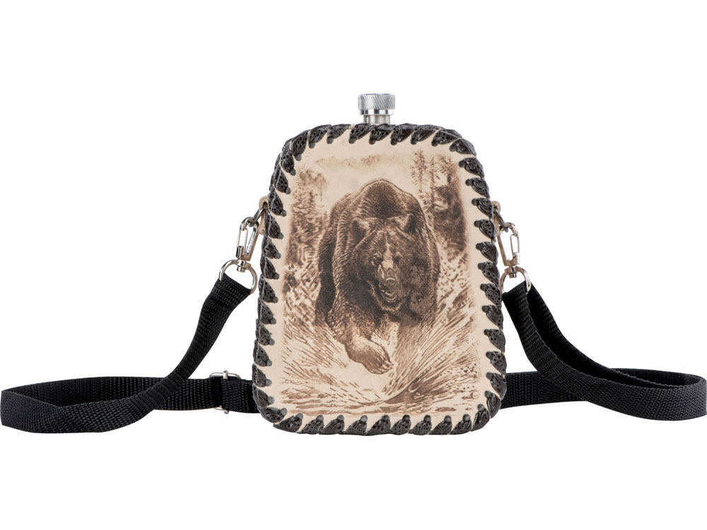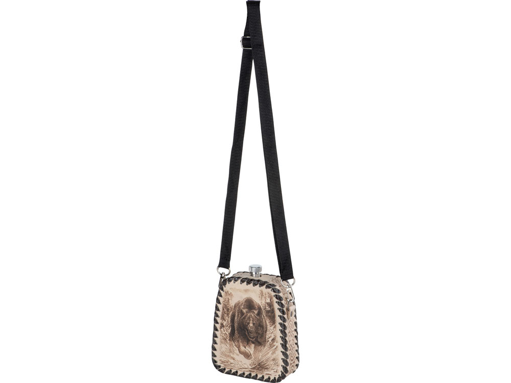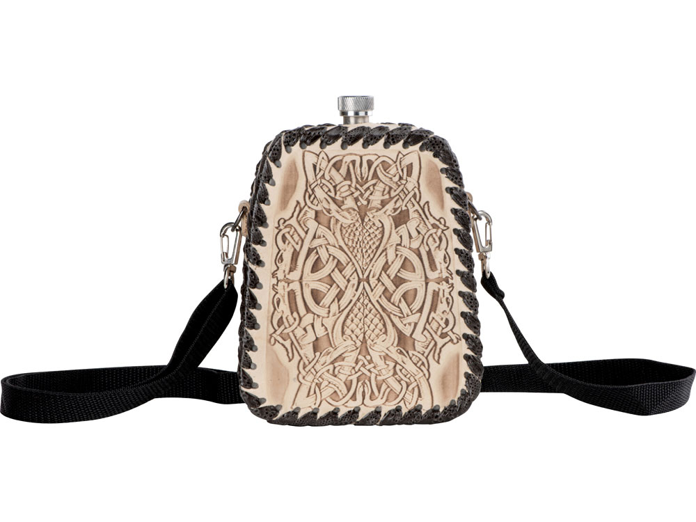 Фляга 0,7л в оплетке из натуральной кожи с нанесением рисунка методом художественного выжигания.