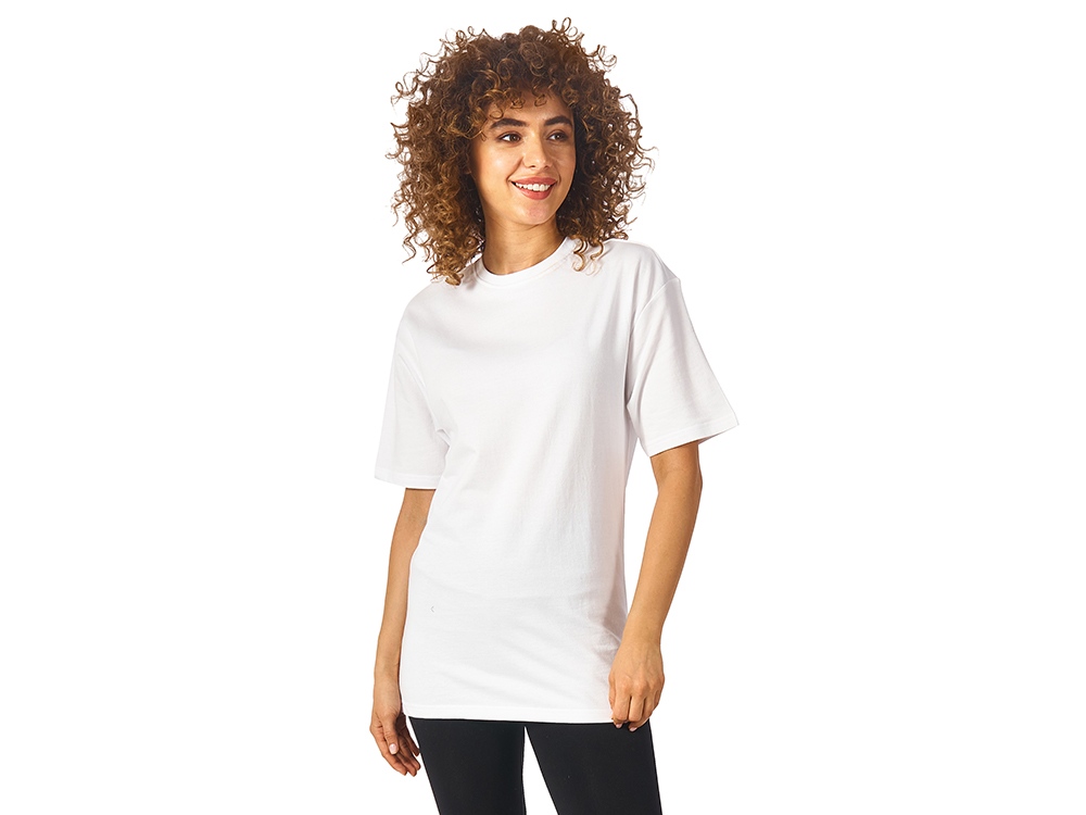 Футболка выполнена из хлопкого френч терри с петельками на изнаночной стороне. Горловина обработана рибом 2х2 и дополнительно усилена тесьмой-елочкой с внутренней стороны спинки. Гладкая поверхность полотна позволяет идеально нанести изображение. Футболка расслабленного силуэта для прогулок и других видов приятного времяпрепровождения