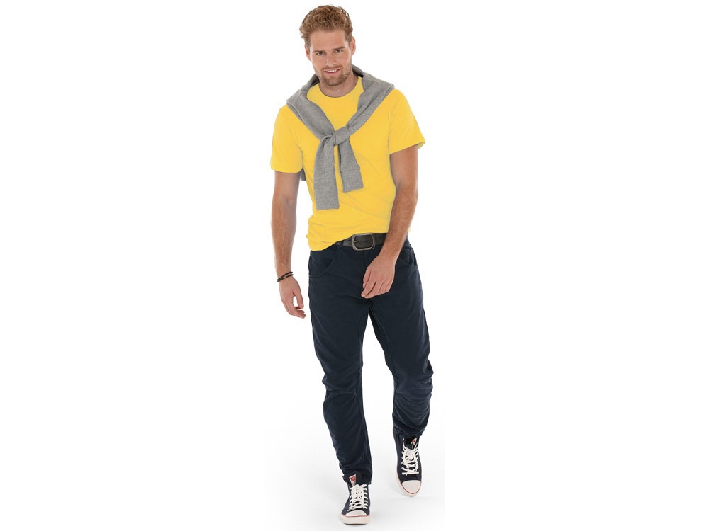 Мужская футболка сшита из натурального хлопка без боковых швов. Отлично подходит для нанесения рекламной информации. Возможна вышивка или трафаретная печать. Натуральный материал не вызывает раздражения кожи. Трафаретная печать (1 цвет (цветные изделия)) на данный товар осуществляется бесплатно. Оплачивается только настройка оборудования в размере 8700 рублей на весь тираж.