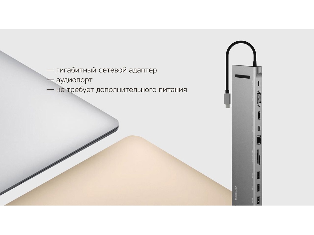 * Для работы видеовыходов требуется поддержка Alternate Mode (альтернативный режим) на Type-C порту ноутбука, к которому подключена док-станция.