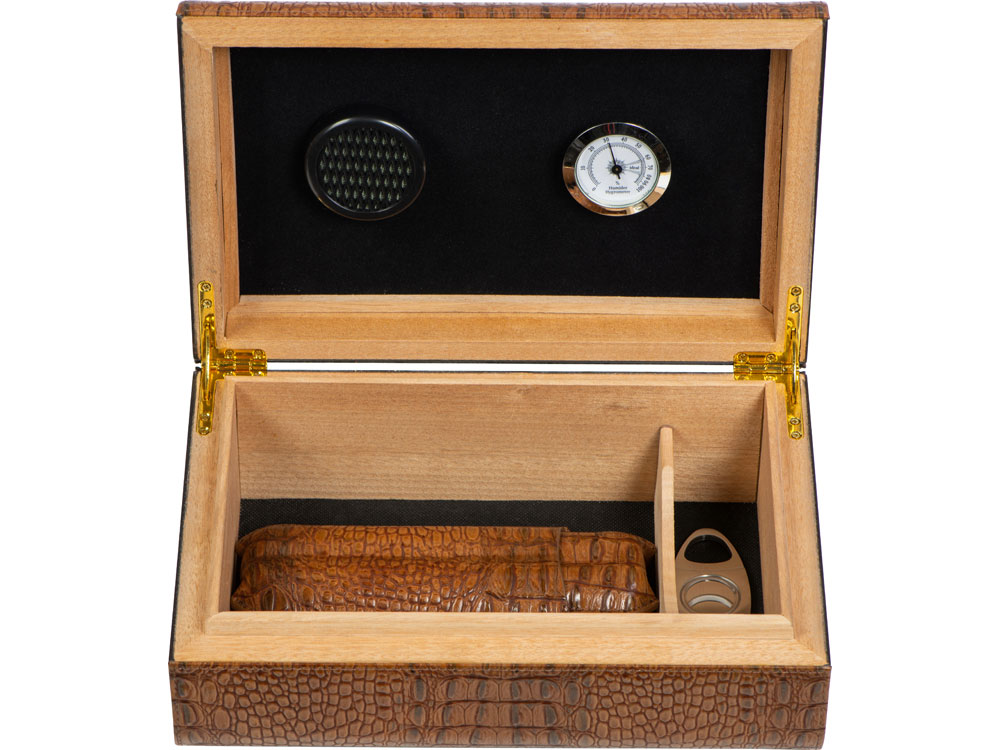 | Комплектность | нож для сигар 9,3 х 3,9 х 0,4 см, футляр для сигар 19 х 7 х 2,8 см, гигрометр (датчик вложности) d5 х 1,4 см, увлажнитель d5,8 х 1,7 см |