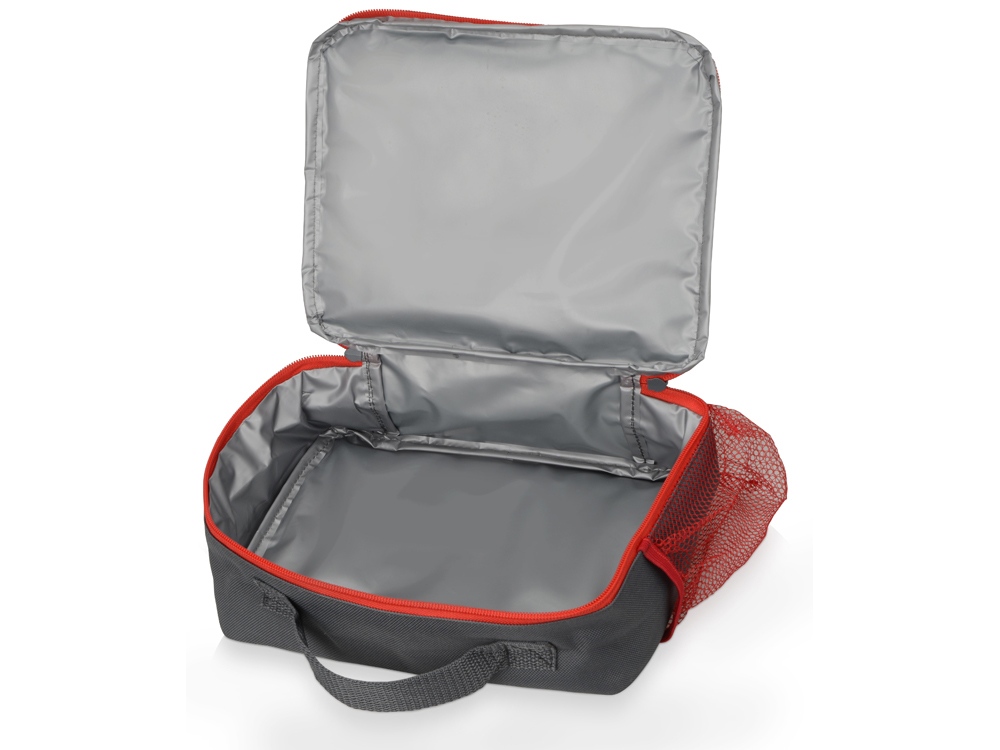 Малая изотермическая сумка «Breeze» с фронтальным карманом и боковым карманом-сеткой превосходно подойдет для индивидуального, ежедневного использования. Термосумка отлично сохраняет свежесть продуктов в течение нескольких часов. При изготовлении сумки использован высококачественный внутренний слой из водонепроницаемого материала PEVA.