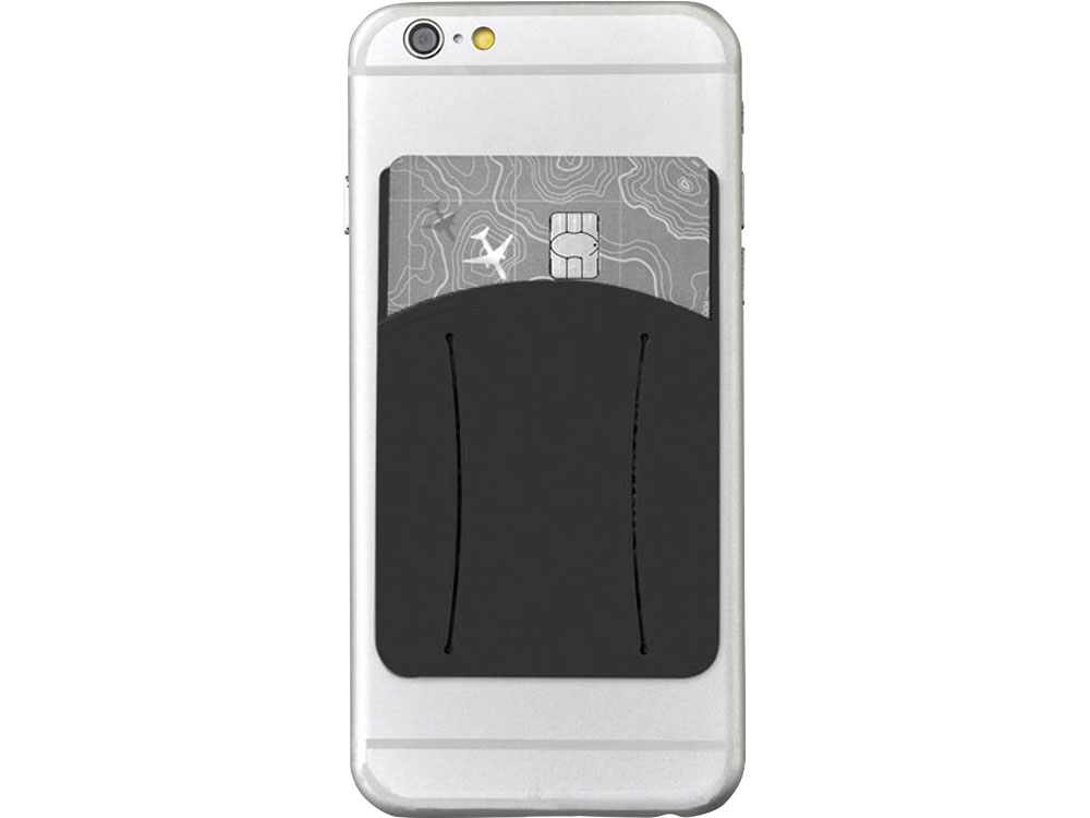 Силиконовый картхолдер для телефона с отверстием для пальца. Картхолдер можно легко прикрепить практически ко всем смартфонам с плоской панелью сзади при помощи липкой ленты. В него можно поместить кредитную карту/ идентификационную карту/ карту-ключ от номера / 5 визиток или банкноты. Отверстие для пальца для более удобного удержания телефона. Трафаретная печать (1 цвет (цветные изделия)) на данный товар осуществляется бесплатно. Оплачивается только настройка оборудования в размере 8700 рублей на весь тираж.