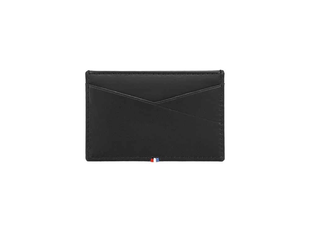 Для пошива компактного картхолдера мастера марки использовали черную гладкую кожу, на которой будут почти незаметны случайные царапины. Модель с двумя слотами для банковских карт и карманом для чеков украсили логотипом в виде литеры D и трехцветной стежкой.