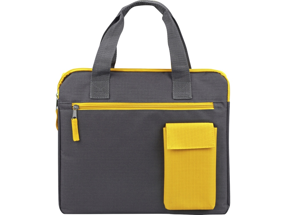Конференц-сумка «Session» с тремя отделениями — основное отделение для документов, отделение на молнии и контрастный карман для ручек и гаджетов Термотрансфер (1 цвет (цветные изделия)) на данный товар осуществляется бесплатно. Оплачивается только настройка оборудования в размере 9200 рублей на весь тираж.