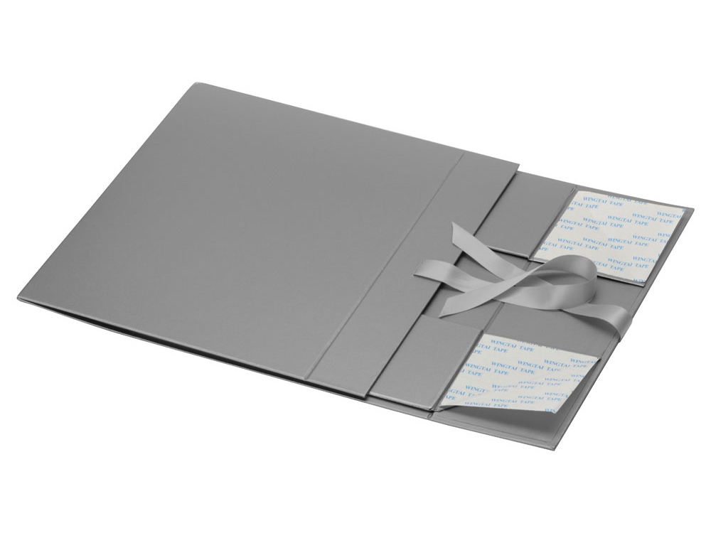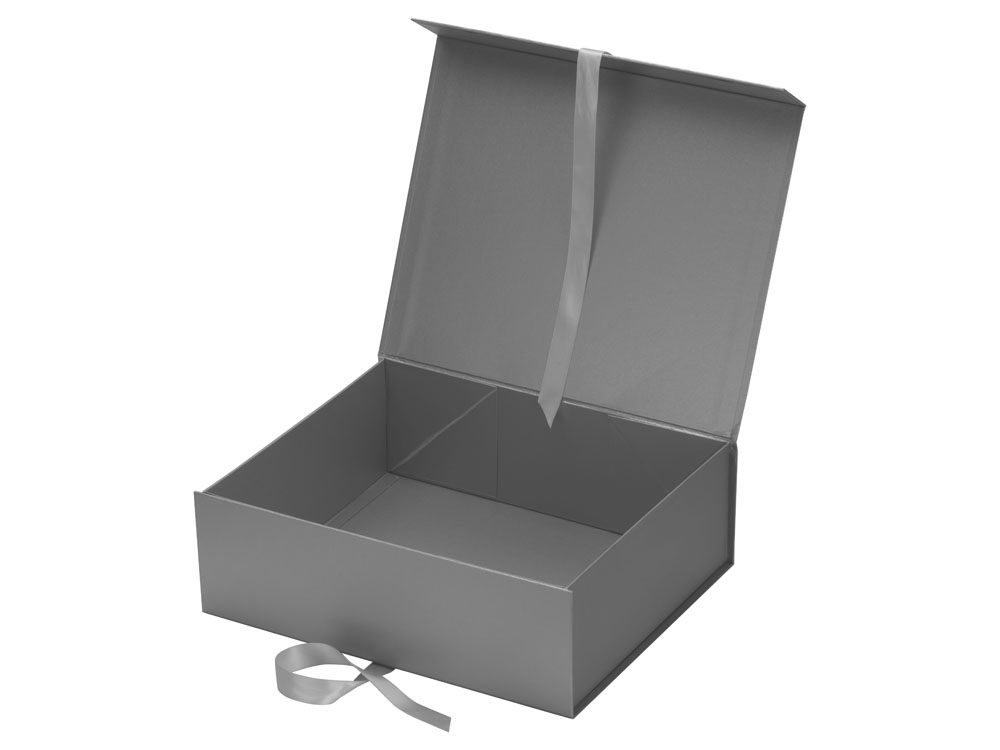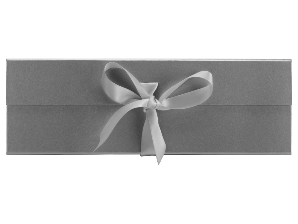 Стильная коробка отлично подойдет в качестве комплектующей для любого подарка. Изделие удивляет своей вместительностью, прочностью и простотой сборки. Боковины коробки надежно фиксируются при помощи двустороннего скотча, а магнитный клапан обеспечивает сохранность содержимого. Атласные ленты придают коробке изысканности и торжественности. Размер коробки в разобранном виде — 46 х 31,5 х1 см. Тиснение (Блинт) на данный товар осуществляется бесплатно. Оплачивается только настройка оборудования в размере 6200 рублей на весь тираж.