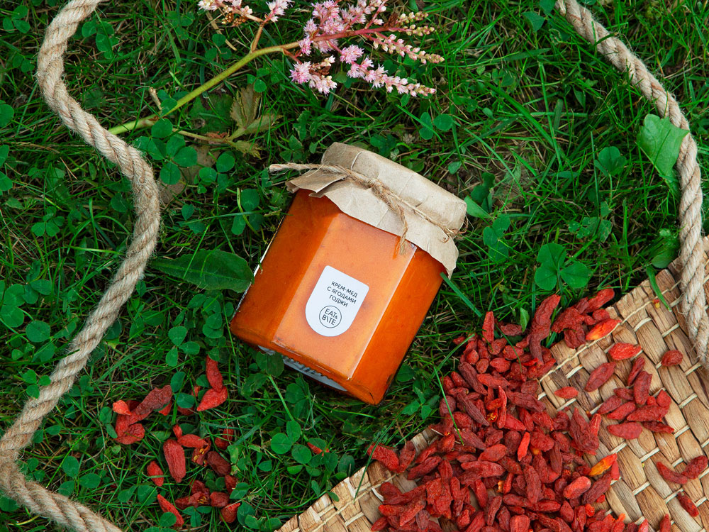 Крем-мёд это настоящий десерт для сладкоежек. Благодаря своей структуре он идеально подходит как топпинг, который легко намазать и не бояться, что он растечется по тарелке. Ягоды годжи добавляют к десерту отличный состав полезных минералов и витаминов. Тампопечать (1 цвет (цветные изделия)) на данный товар осуществляется бесплатно. Оплачивается только настройка оборудования в размере 4000 рублей на весь тираж.