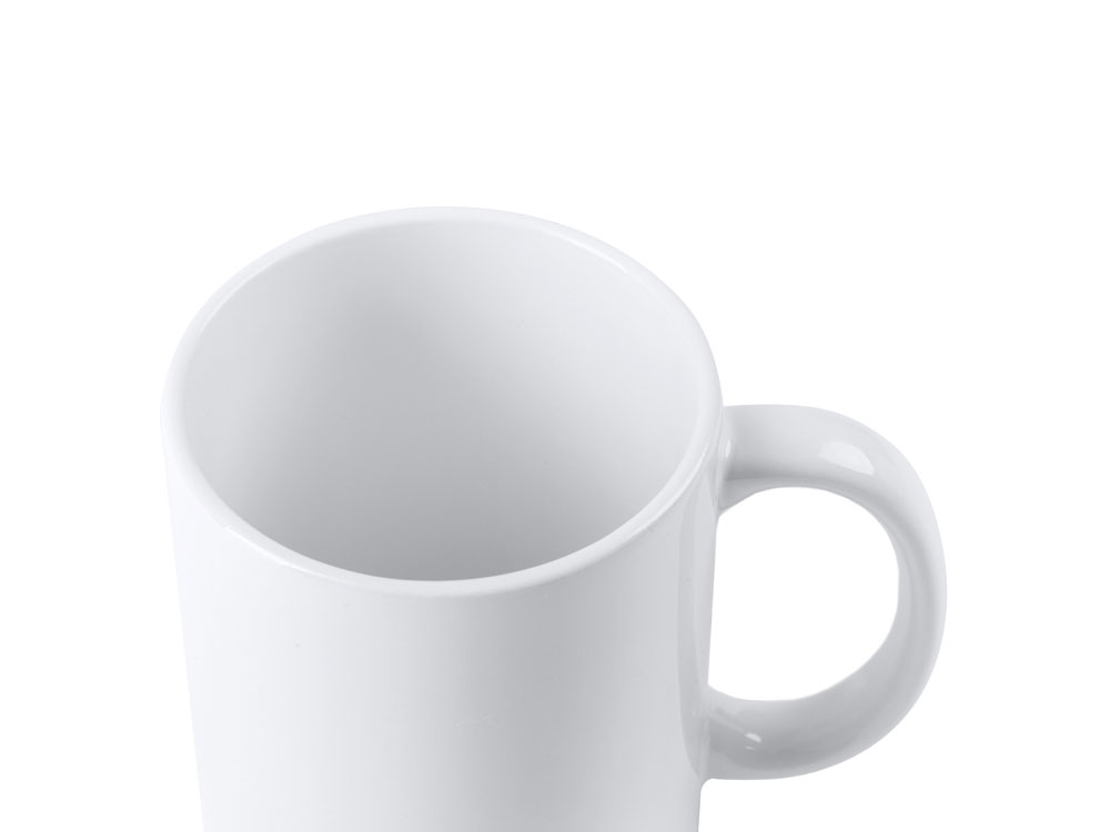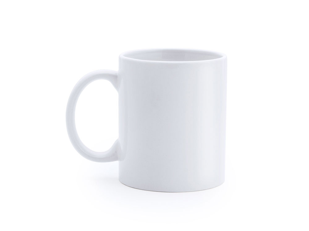 Керамическая кружка объемом 350 мл, подходит для сублимации. Поставляется в белой упаковке.