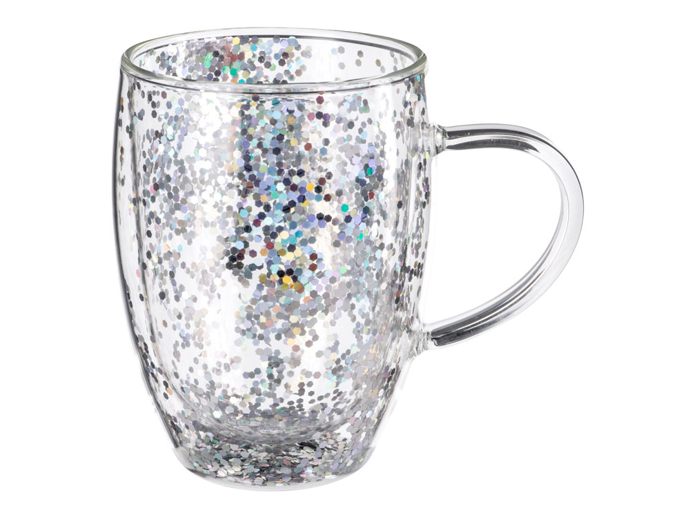 Кружка с праздничным настроением сделает любое чаепитие немного ярче и настроит на позитивный лад. Яркие блестки свободно перемещаются между двойными стенками: просто встряхните кружку, и вихрь цветных блесток взметнется наверх.