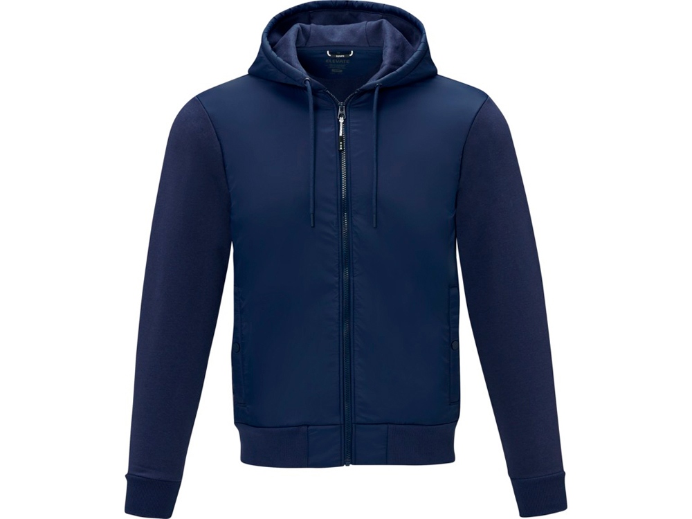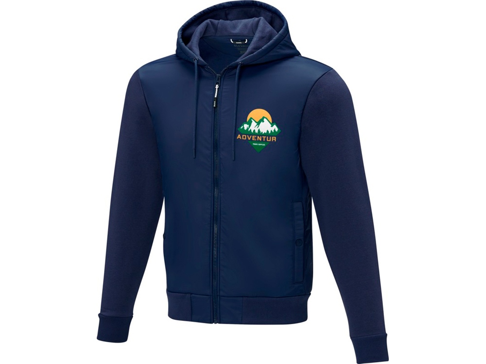 Открытая пластиковая застежка-молния по центру спереди. Карманы спереди. Внутренний карман. Эластичные манжеты и нижний край из гладкого трикотажа. Петля для подвешивания с фирменной символикой. Капюшон на кулиске. Внутренняя сторона покрыта ворсом. Удобный бегунок застежки-молнии. Главный лейбл нанесен методом термоприклеивания, удобным для размещения рисунков на ткани.