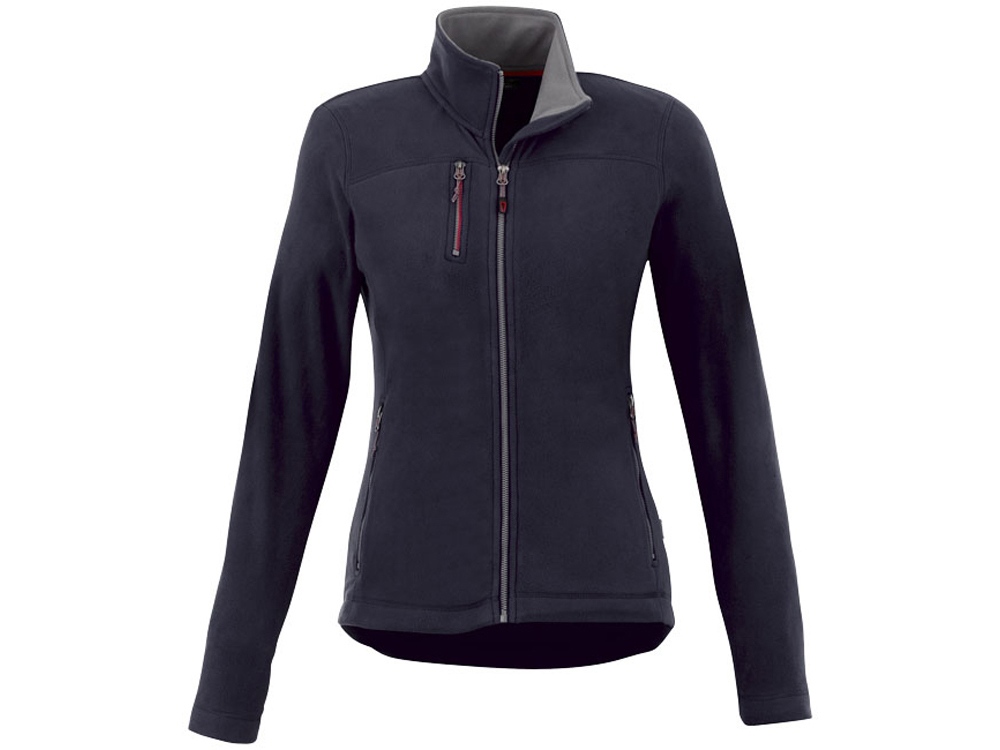 Женская микрофлисовая куртка Pitch. Карманы для рук на молнии. Нагрудный карман на молнии. Внутренняя сторона воротника в контрастном цвете. Внутренний выход для медиапроводов. Обратная контрастная молния спереди. Молния легкого скольжения. Двухцветная лента по линии окантовки горловины. Тканая -флажок сбоку. 100% полиэстер микро флис. 200 г/м².