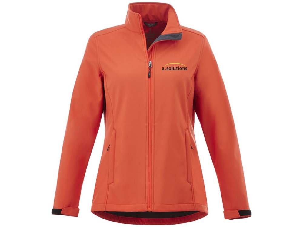 Женская куртка софтшел Maxson. Универсальный покрой. Передняя застежка на обратной молнии. Внутренняя планка. Карманы для рук на молнии. Эргономичные рукава. Усиленные локти. Молния легкого скольжения. Эластичная ткань из 100% полиэстера, склеенная с микрофлисом из 100% полиэстера с водонепроницаемой дышащей мембраной и водоотталкивающей отделкой. 270 г/м2. Термотрансфер (1 цвет (цветные изделия)) на данный товар осуществляется бесплатно. Оплачивается только настройка оборудования в размере 9200 рублей на весь тираж.